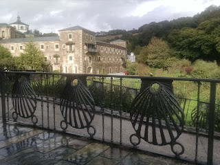 Time to get ready for bed so don't disturb others. Liz, the English woman who is married to a German & lives near Berlin, & I are planning on walking together again tomorrow to Sarria, 7+ miles. We pray no rain or just light mist! We have reservations as larger town so no worries about having a bed. Also pack shipping all arranged so can sleep soundly!!! They turned the heat on so every register has boots & other wet, outer wear on them to hopefully be dry by morning. Putting on wet hiking shoes/boots doesn't sound at all appealing!! Also have them stuffed with newspaper that has been changed out several times. Once again, thanks for prayers and good thoughts... No bedbugs have been encountered yet!! No falls, no bad blisters, and today first bad weather which is to clear on Wednesday - life is good!! Good night!